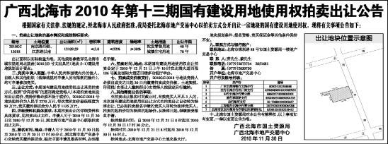 广西北海市2010年第十三期国有建设用地使用权拍卖出让公告