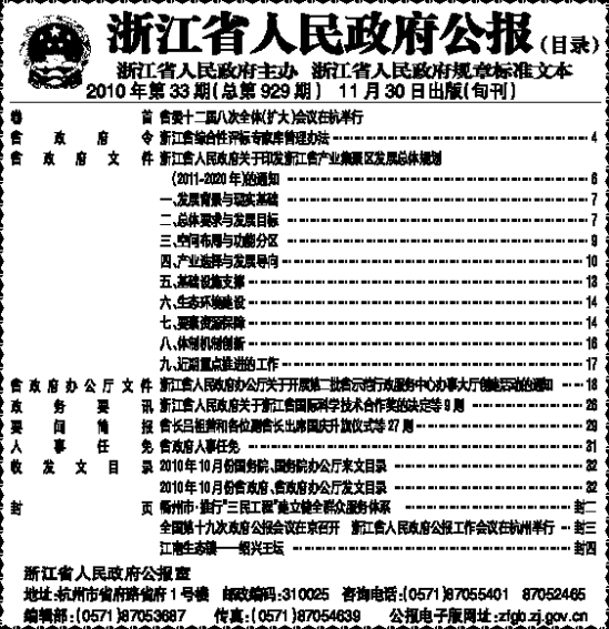 编辑部:(0571)87053687 传真:(0571)87054639 公报电子版网址:zfgb.zj.gov.cn