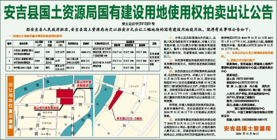 安吉县国土资源局国有建设用地使用权拍卖出让公告