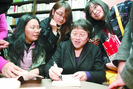 11月30日晚,《呼救人心》作者之一的李银河应红旗出版社之邀,来到杭州枫林晚书店,与现场80余位读者畅谈爱情观。图为签售现场。记者 魏志阳 童桦 摄