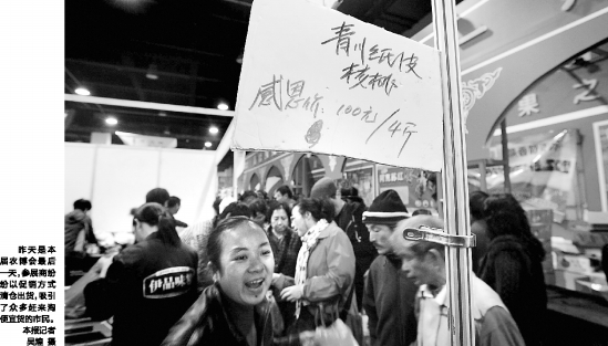 昨天是本届农博会最后一天,参展商纷纷以促销方式清仓出货,吸引了众多赶来淘便宜货的市民。