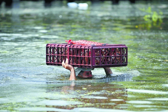 11月30日,在哥伦比亚考卡山谷省帕尔米拉,一男子头顶自家饲养的鸡涉水前行。据法新社报道,暴雨引发的洪水已导致哥伦比亚全国160余人死亡,223人受伤,20人失踪。 新华社发