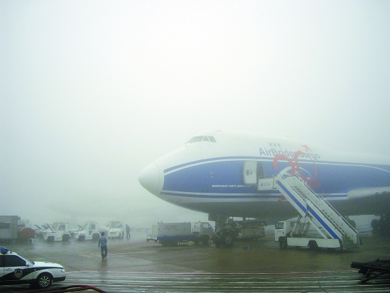 12月1日清晨,浦东机场停机坪上浓雾弥漫。受大雾影响,多架从上海起飞的航班一度延误或取消。 新华社发(杨夏杰 摄)
