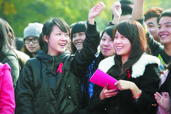 昨日,由省卫生厅等主办的世界艾滋病日大型宣传活动在杭州师范大学举行。图为大学生争相抢答防艾知识竞赛题。