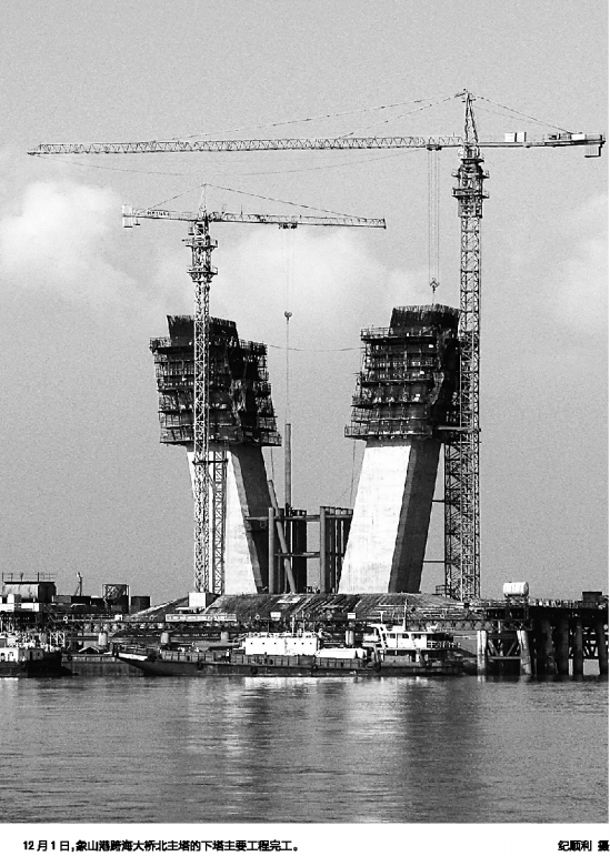 12月1日,象山港跨海大桥北主塔的下塔主要工程完工。纪顺利 摄