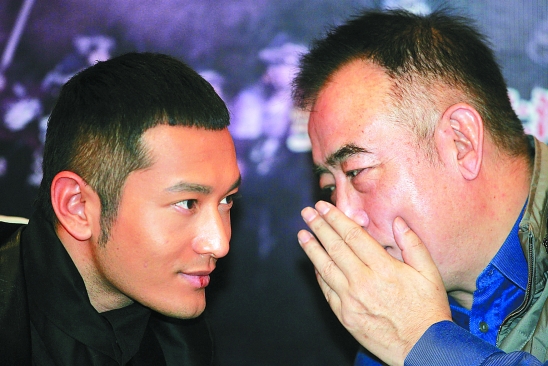 陈凯歌与主演黄晓明。吴煌 魏志阳 摄