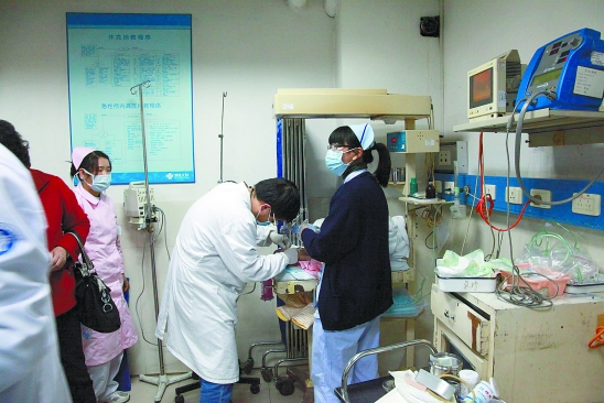 省儿保重症监护室里,医护人员全力抢救女婴。