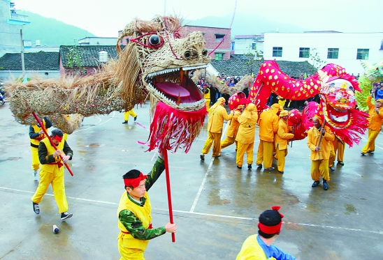 昨日,兰溪市诸葛镇、建德市大慈岩镇、龙游县横山镇的上千名农民,相聚在龙游县横山镇天池村,举办盛大的舞龙联谊会。徐宪忠 李建林 摄