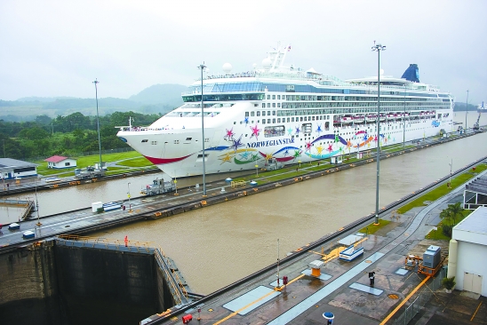 | 12月9日,一艘名为“挪威之星”的邮轮正在通过巴拿马运河米拉弗洛雷斯船闸。当日,巴拿马运河因暴雨暂停通航17小时后,于巴拿马当地时间9日凌晨5时(北京时间9日18时)恢复通航。巴拿马运河通航96年间,仅有两次暂停通航,第一次是因为1989年美军入侵巴拿马,第二次则是此次因暴雨所致。 新华社记者 王沛 摄 |