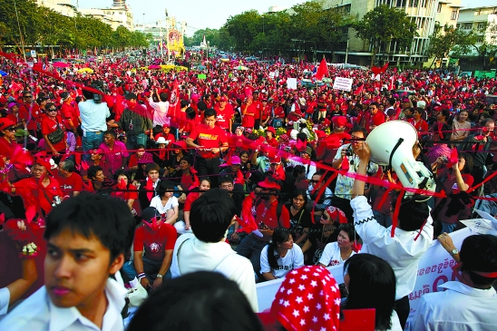 | 12月10日,泰国反政府民间组织反独裁民主联盟(“红衫军”)成员在曼谷市中心的民主纪念碑地区参加集会。当日,“红衫军”在民主纪念碑地区举行集会活动,纪念今年4月“红衫军”在集会点与军警发生冲突8个月以及泰国宪法日。 新华社/法新 |