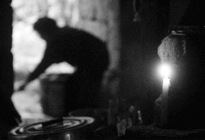 | 老房光线昏暗,即使白天干活也要点蜡烛。(摄于2009年4月3日) |