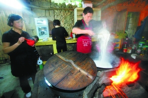 | 通电后,村里的“农家乐”来了城里客人。 |