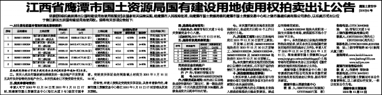 江西省鹰潭市国土资源局国有建设用地使用权拍卖出让公告