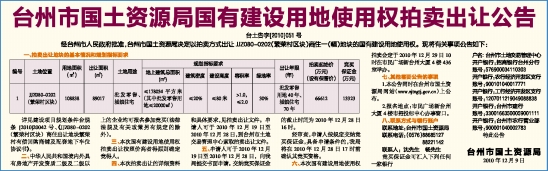 四、本次拍卖出让的详细资料和具体要求,见拍卖出让文件。申请人可于2010年12月19日至2010年12月28日,到台州市土地交易管理中心索取拍卖出让文件。