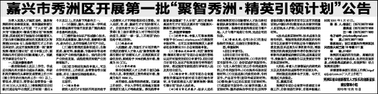 嘉兴市秀洲区开展第一批“聚智秀洲·精英引领计划”公告