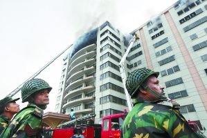 | 12月14日,消防员在孟加拉国萨瓦尔镇灭火。新华社发 |