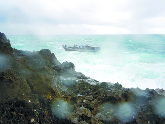 12月15日,在澳大利亚北部圣诞岛海岸附近,一艘难民船在风浪中行驶。 新华社发