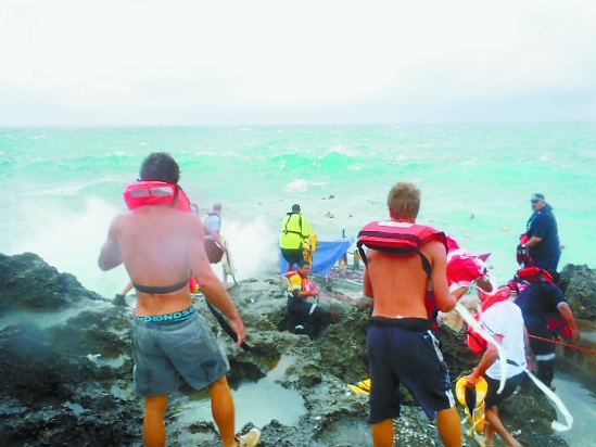 12月15日,救援人员在圣诞岛海岸附近搜救沉船上的乘客。 新华社发