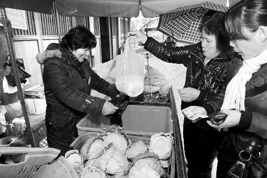 12月14日,杭城市民在八卦田买现磨糯米和现割蔬菜。由于八卦田里的糯米施的是农家肥,蔬菜不施农药,深受老杭州人的喜欢。本报记者 吴元峰 摄