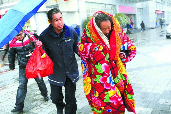 嘉兴汽车北站工作人员为一名流浪人员送上食物和棉衣,并劝
