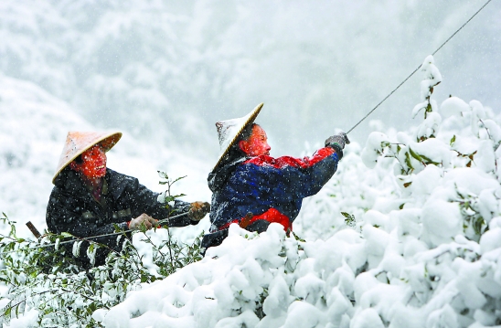 昨日,诸暨市供电局抢修队员正在抢修受损供电线路。