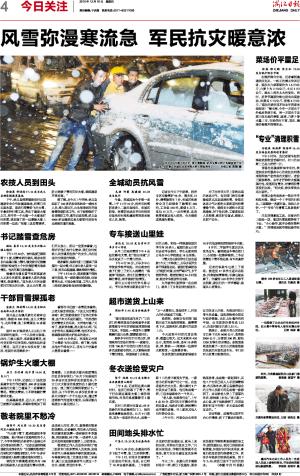 风雪弥漫寒流急 军民抗灾暖意浓