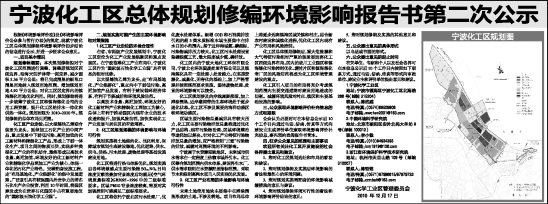 宁波化工区总体规划修编环境影响报告书第二次公示