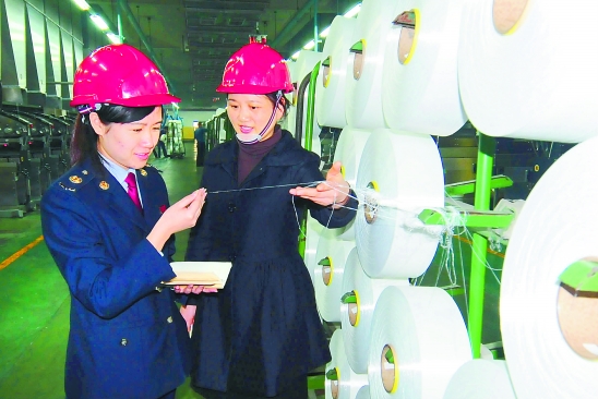 | 今年萧山区百亿主导产业——化纤行业发展势头迅猛,1至10月应税销售收入和应缴增值税分别同比增长68.9%和128.44%。图为萧山区国税局干部在行业龙头——浙江恒逸聚合物有限公司了解生产经营情况,并为其量身定制“个性化”服务。 姚楠 饶露/文 里尔/摄 |