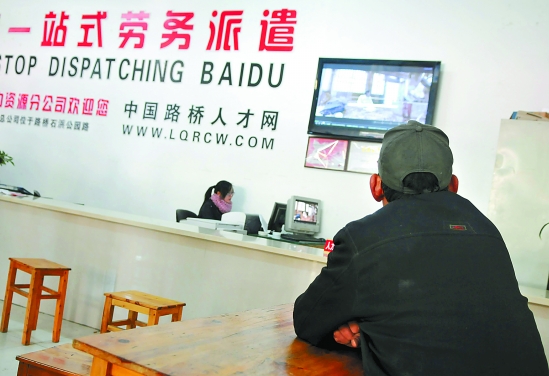 元旦、春节临近,不少外来务工人员提前返乡给企业带来用工短缺压力。12月19日,在浙江省台州市路桥区劳动力市场,工作人员无聊地坐在招聘桌旁观看电视节目。 新华社发