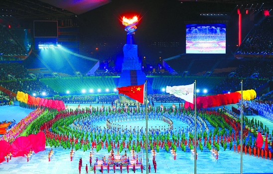 12月19日,广州2010年亚洲残疾人运动会闭幕式在广州广东奥林匹克体育中心举行。图为闭幕式文艺演出。