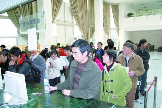 2007年12月,浙江图书馆实行办证免年费,图为免年费首日办证处排起长队