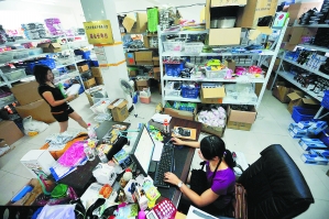 | 在义乌青岩刘村一家农民房的地下室,一家网店的员工正在抓紧打包商品,这些通过网上定货的商品将通过物流发往全国各地。根据规划,义乌首个网上商城与现实店铺的结合体——“义乌淘宝城”将落户青岩刘村,整个“淘宝城”依村而建,初步规划30多万平方米,将形成电子商务、物流、仓储等业态。 李震宇/CFP |