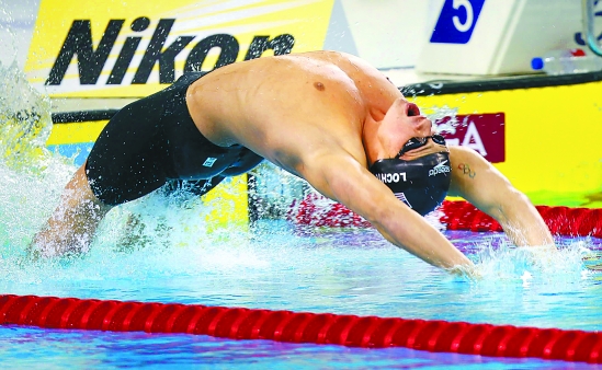 12月19日,在阿联酋迪拜进行的2010世界短池游泳锦标赛男子200米仰泳决赛中,美国选手罗切特以1分46秒68的成绩获得冠军。他在本届比赛中共获得6枚金牌。新华社发