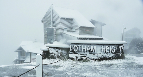 时下正是澳大利亚夏季,澳大利亚东部地区的新南威尔士州和维多利亚州部分地区却罕见地下了一场大雪,部分地区的积雪厚度达到10厘米。这张12月19日拍摄的照片显示,澳大利亚东部地区一幢建筑被积雪覆盖。 新华社发
