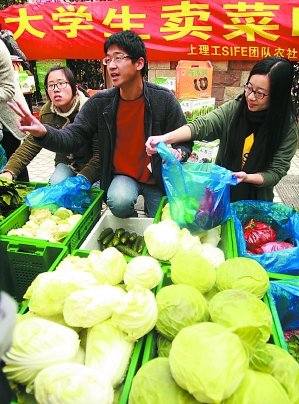 | 12月11日,上海理工大学的大学生和市郊农业合作社联手,推出了“农业和社区联手直供”活动。 CFP供图 |