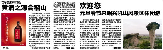绍兴吼山风景区是省级著名风景区,首批省级林业观光园区。元旦、春节期间,将奉献给广大游客一系列更富特色、更具魅力的休闲游套餐。