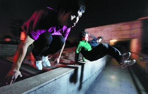 他们是都市潮人——跑酷一族。这群跑酷爱好者有学生,也有上班族,大多年龄在21至25岁之间。“我之前从未发现,世上还有这么一项运动能抓住我的心。就觉得跑酷运动很酷,很时尚,很潮。” 杭州2S跑酷社的小A说。经一年艰苦训练,小A的训练难度节节攀升,“我是什么动作难度大,就练什么。”