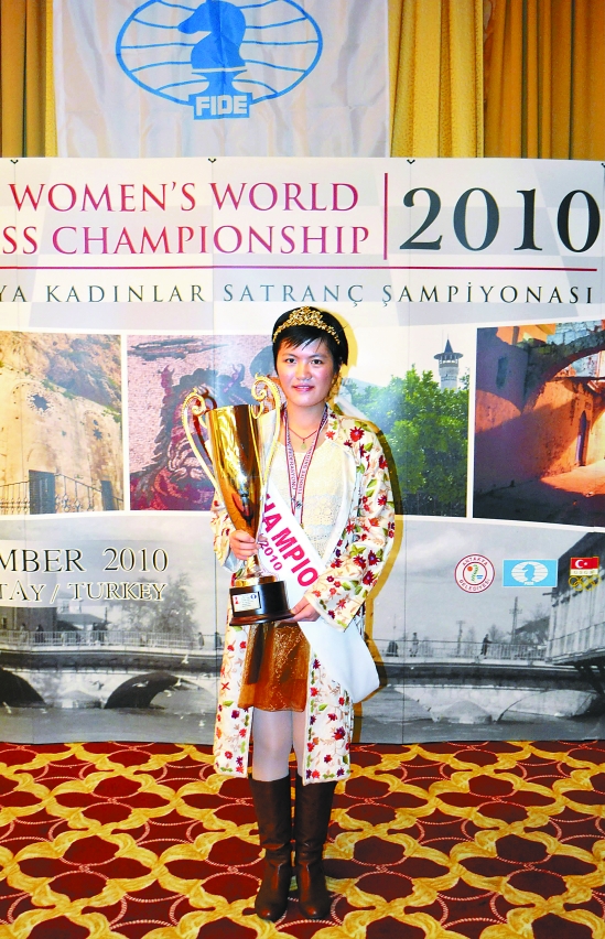 12月24日,获得冠军的中国选手侯逸凡在颁奖仪式后留影。当日,2010年女子国际象棋世界锦标赛在土耳其落幕。中国16岁的“天才少女”侯逸凡经过加赛快棋战胜23岁的队友阮露斐,成为有史以来最年轻的世界棋后。