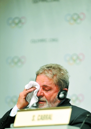 | 2009年10月2日,在丹麦首都哥本哈根,巴西总统卢拉在巴西里约热内卢申奥成功后热泪盈眶。新华社发 |