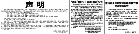 三、报名及看样日期:自本公告发布之日起至2011年1月24日下午4时止(以保证金到账时间为准),有意竞买者请携带有效身份证明到浙江舟山定海卫海路87号海韵大厦14楼本公司报名。节假日除外。看样时间:2011年1月23日、24日两天;看样地点:舟山港。