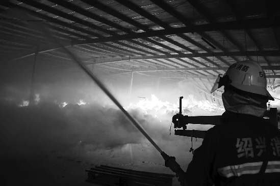 绍兴县夏履镇火灾扑救现场。 余昌龙 摄