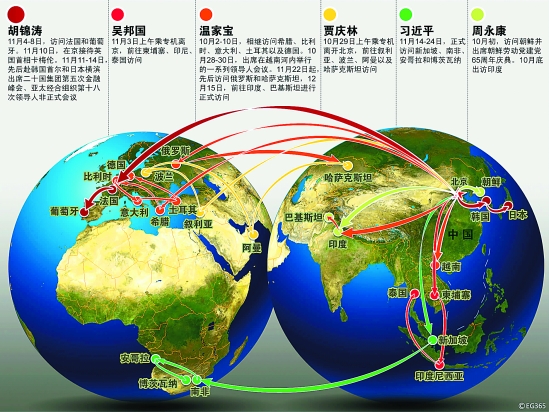 临近岁末,中国领导人接连出访,掀起了一波高层外交的高潮,如此密度和规模,可以说是罕见的,这显示出中国高层积极主动、充满自信的外交风格和高超的外交智慧。CFP供图