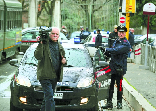 | 12月27日,意大利宪兵在位于罗马的希腊驻意大利使馆旁值守。 希腊、委内瑞拉等国驻意大利使馆当天发现可疑包裹,意大利警察在希腊驻意大利使馆安全拆除一个包裹炸弹的引信,其他可疑包裹经检查不含爆炸物。 新华社记者 王庆钦 摄 |