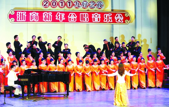 12月28日,由《浙商》杂志主办的“2011九好之夜”浙商新年合唱音乐会在浙江音乐厅举行,来自全省的13支合唱团,为观众献上了一台丰富多彩的音乐会。图为浙报传媒8531合唱团在演唱。