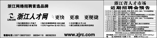 12月30日(周四) 浙江省营销、外贸、管理、财务、文秘、广告专场招聘会