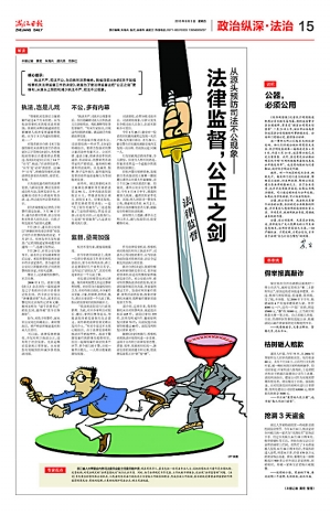8月5日的政治周刊第15版,以《法律监督,公正之剑》为题刊登报道后,立即产生良好的社会反响,并受到省委宣传部领导的批示肯定。
