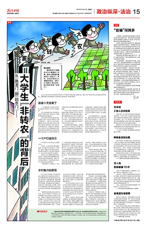 【记者感言】采访中,这些出生在农村的大学生“引经据典”,十分熟悉相关政策和法规,这给我留下深刻的印象。与他们的父母辈相比,他们更懂得自己的权利是什么,也更懂得去争取、去维护。当地政府因势利导,大胆创新,充分尊重人们的选择权,无疑是更可喜的进步!