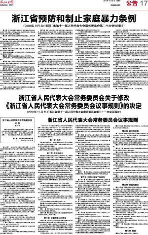 浙江省人民代表大会常务委员会关于修改 《浙江省人民代表大会常务委员会议事规则》的决定