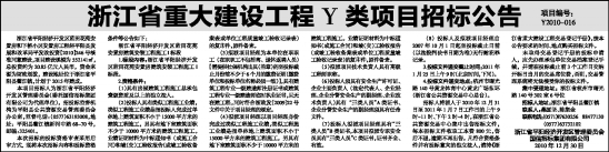 招标人将派人于2010年12月31日至2011年1月7日工作日的上午9时~11时、下午2时~4时,在浙江省公共资源交易中心集中出售招标文件,每本招标文件收取工本费800元,售后不退,逾期不再出售。凡符合资格条件并有投标意向的独立法人,请持《浙江省重大建设工程交易登记手册》,按本公告要求的时间、地点购买招标文件。