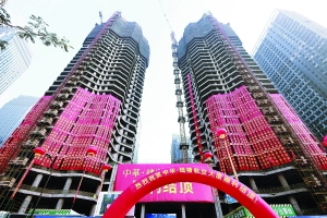 | 12月29日,钱江新城CBD的中华·钱塘航空大厦张灯结彩。作为浙江首部航空地产,中华·钱塘航空大厦耗时两年有余顺利结顶。 余华供图 |